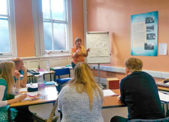 Elaine also organises and leads events related to music and song-writing. She teaches song- writing, performance skills and guitar.