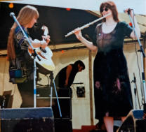 Paula Smith, playing whistle, flute and Celtic harp.